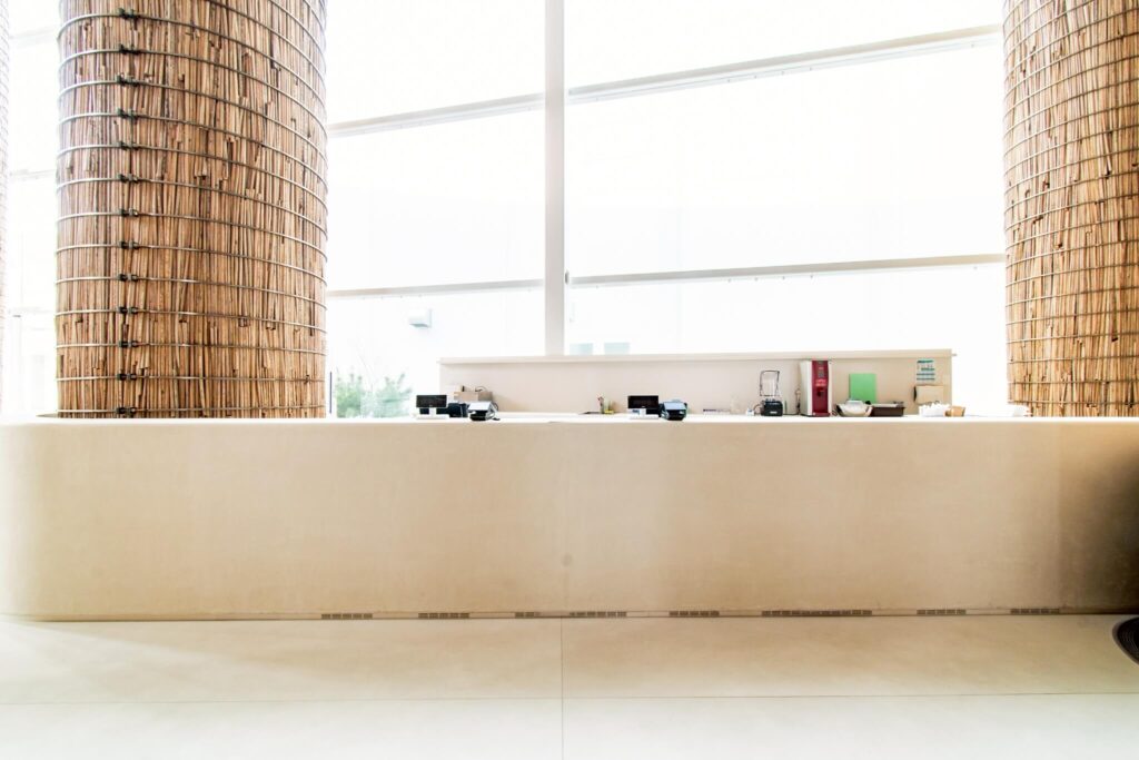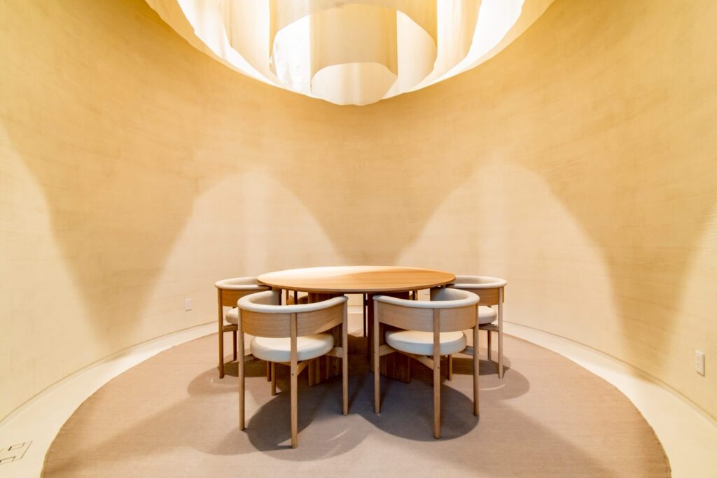 内装工事・什器製作では、UAEの伝統的な素材やデザインと日本の技術を融合させた特注家具の設計・製造をサポート。福岡県大川市の職人と共に、大川市と大阪を行き来しながら、限られた時間と条件下で高品質な空間を創出することができました。